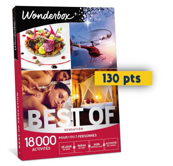 Offrez-vous un monde d’expériences avec plus de 18 000 activités au choix ! Conduite sportive sur circuit, nuit inoubliable dans un hôtel 4 étoiles, baptême de l’air… que vous soyez adepte de sensations fortes ou de détente, il y en a pour tous les goûts. Avec une validité de 3 ans et 3 mois, vous avez tout le temps de planifier l’expérience de vos rêves, seul(e) ou à deux.