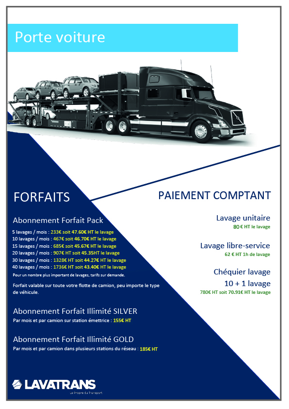Tarifs conseillés du réseau LAVATRANS. Peuvent être différents selon les stations.
